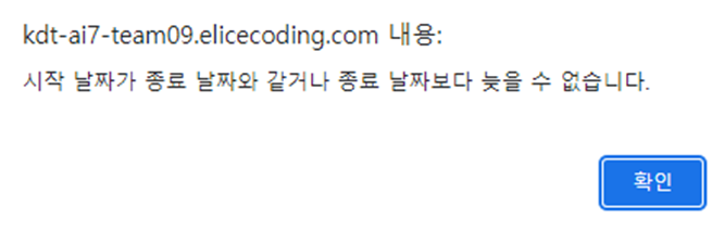 → 필수로 들어가야 하는 필드와 기간 validation