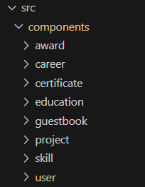 → 경력, 학력, 수상이력, 자격증, 프로젝트, 사용기술 컴포넌트 수정/삭제