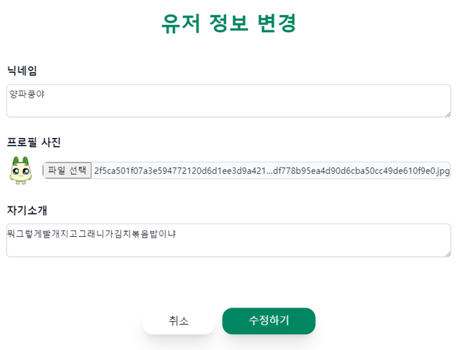 - 닉네임, 자기소개 수정