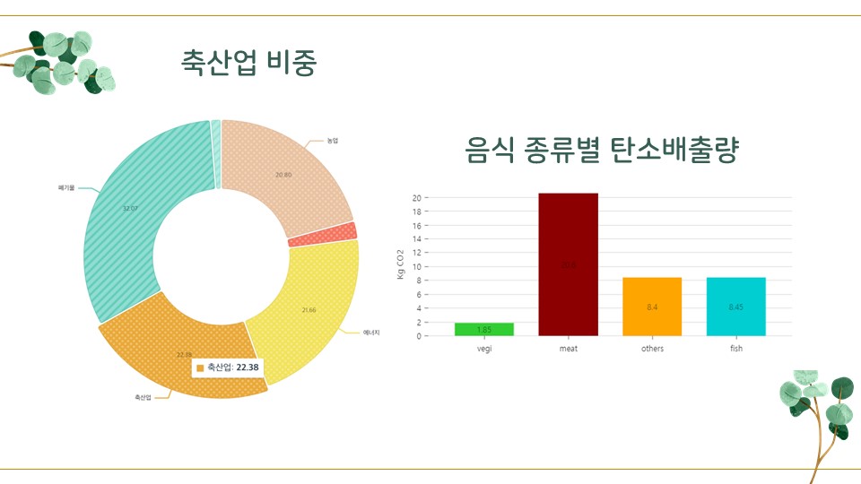 목표 데이터 분석 결과를 바탕으로 육류 소비로 인한 탄소 배출량의 심각성 파악 및 유저 간 커뮤니티 형성을 통해 채식 문화를 장려하는 서비스 제공